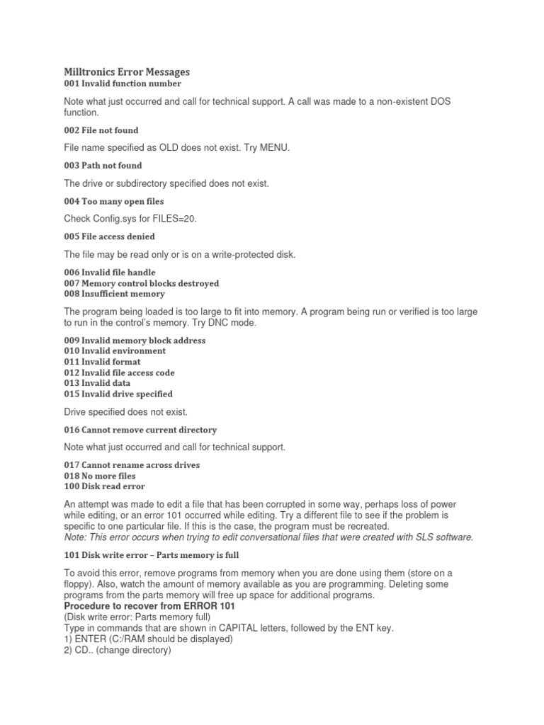 floppy). Also, watch the amount of memory available as you are programming. Deleting some