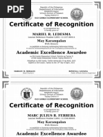 sa pagkilala sa kanyang natatanging kahusayan bilang
