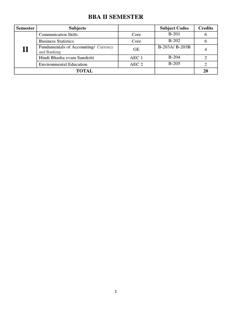 Subject Code BBA – 201