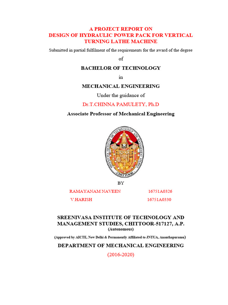 The project is aimed at the Design of hydraulic Power pack for vertical turning lathe.