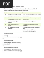 2. If we see syntax wise then throw is followed by an instance variable and throws is followed by exception class names.