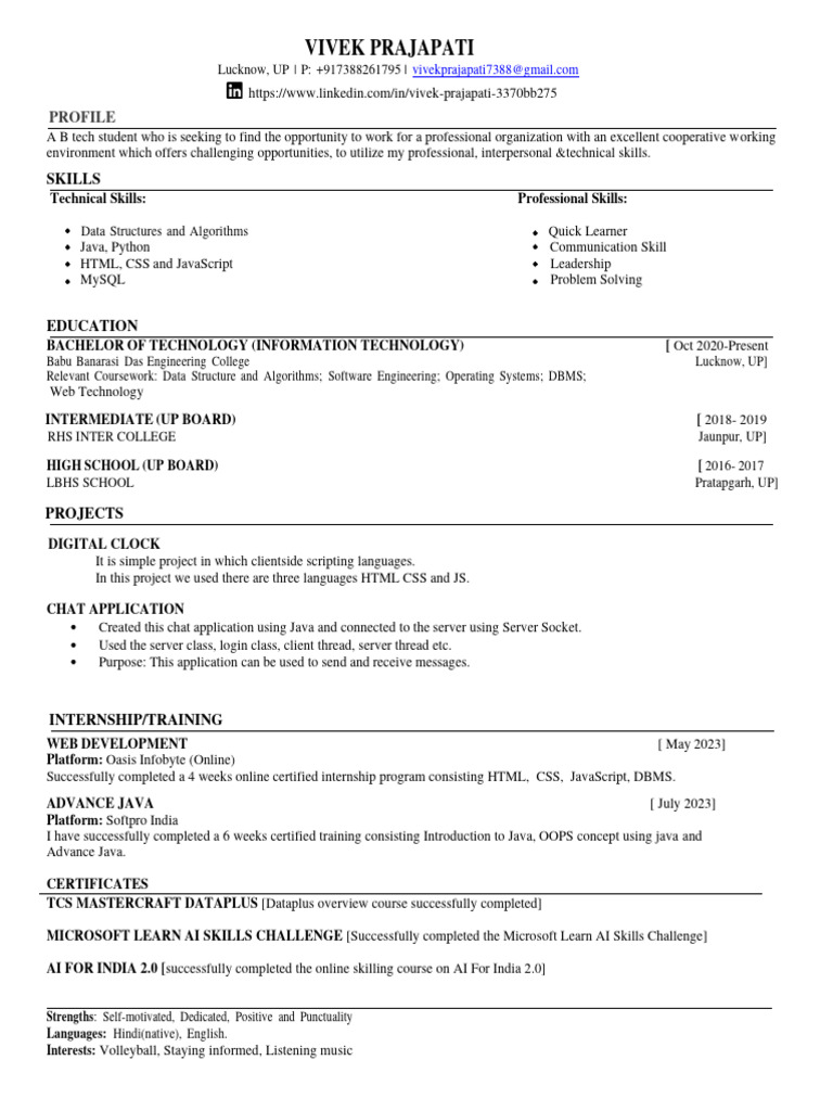 Lucknow, UP | P: +917388261795 | vivekprajapati7388@gmail.com