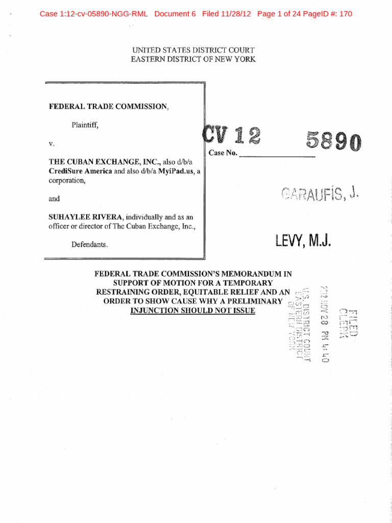 cv-7191 (S.D.N.Y. Sept. 25, 2012); FTC v. Marczak et al., No. 12-cv-7192 (S.D.N.Y. Sept. 25,