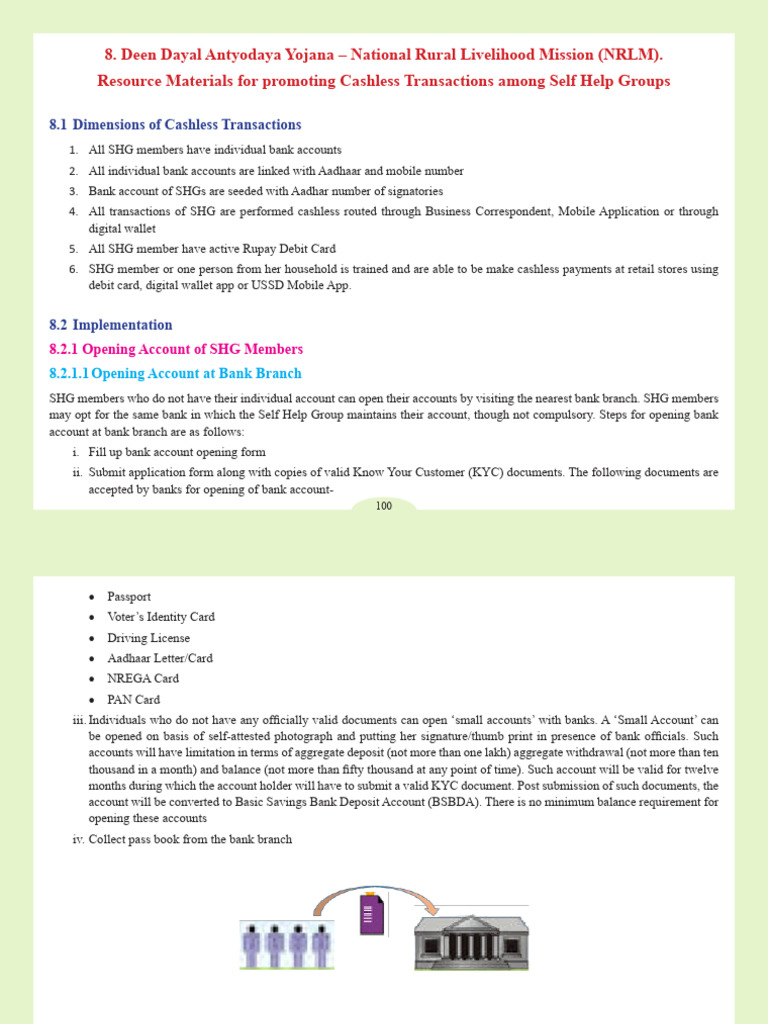 SHG members who do not have their individual account can open their accounts by visiting the nearest bank branch. SHG members