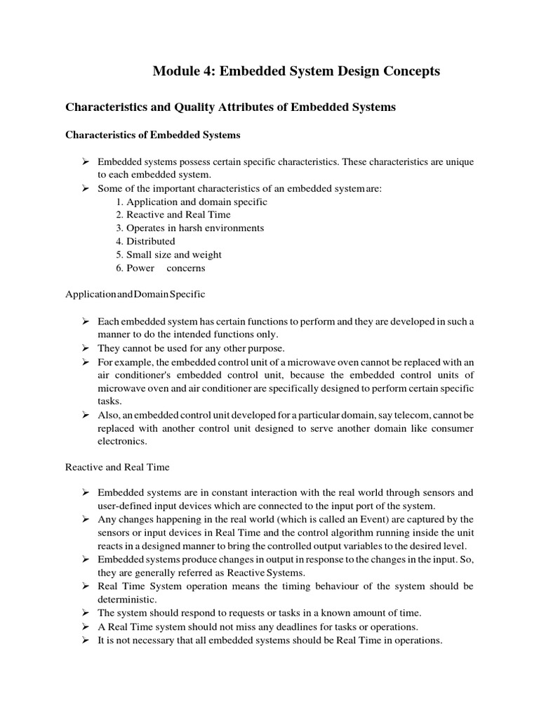 ➢ Some of the important characteristics of an embedded system are: