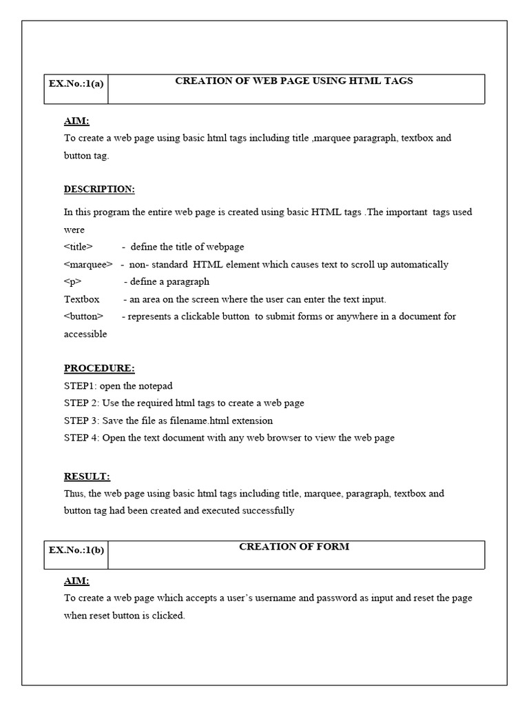:1(a) CREATION OF WEB PAGE USING HTML TAGS