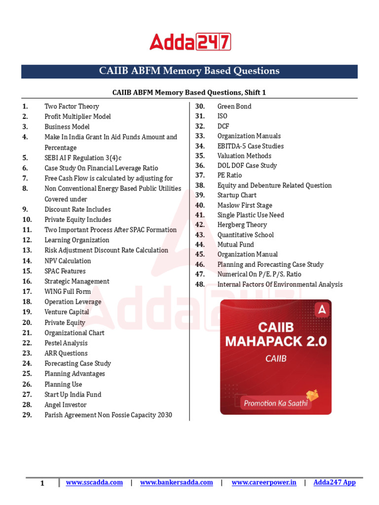 CAIIB ABFM Memory Based Questions, Shift 2 & 3