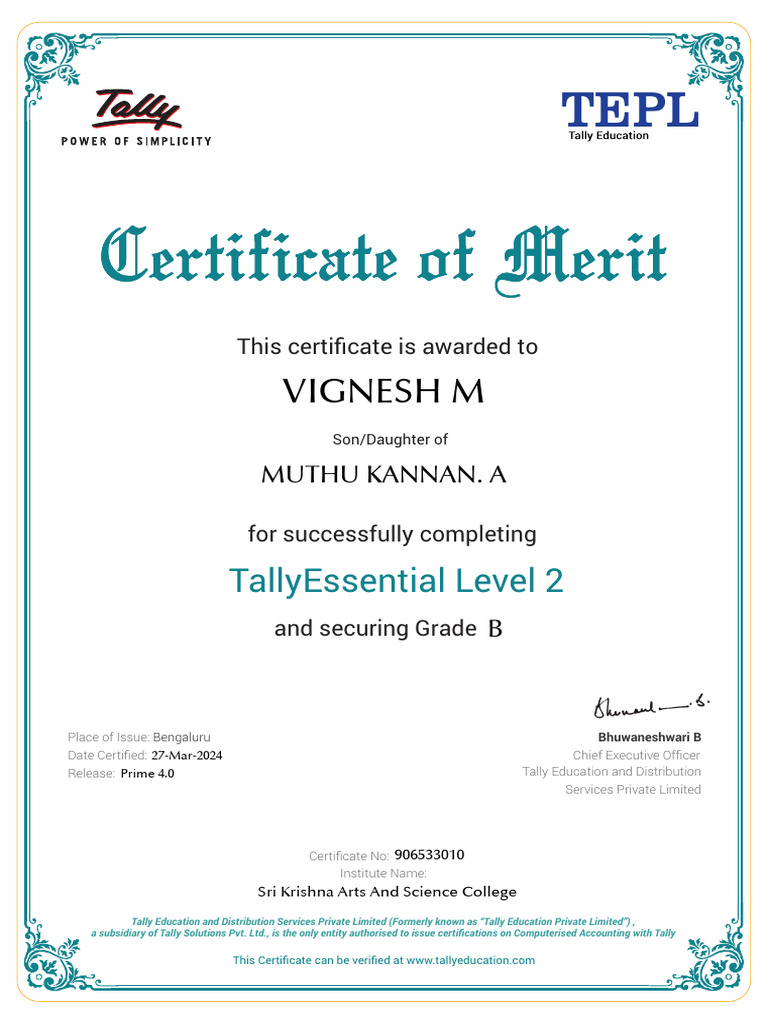 a subsidiary of Tally Solutions Pvt. Ltd., is the only entity authorised to issue certifications on Computerised Accounting with Tally