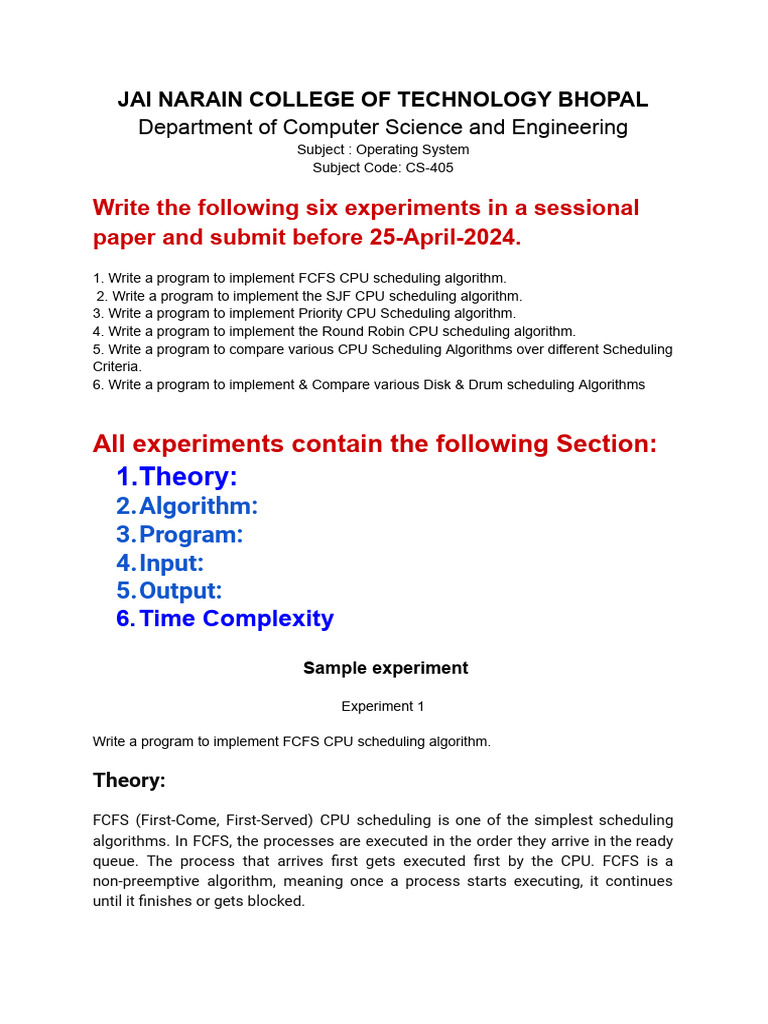 1. Write a program to implement FCFS CPU scheduling algorithm.