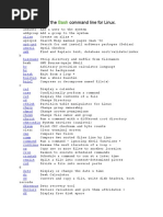 quotactl Set disk quotas r ram ram disk device rcp Copy files between two machines read Read a line from standard input readarray Read from stdin into an array variable readonly Mark variables/functions as readonly reboot Reboot the system rename Rename files renice Alter priority of running processes remsync Synchronize remote files via email return Exit a shell function rev Reverse lines of a file rm Remove files rmdir Remove folder(s) rsync Remote file copy (Synchronize file trees) s screen scp sdiff sed select seq set sftp shift shopt shutdown sleep slocate sort source split ssh strace su sudo sum suspend symlink sync t tail Output the last part of files tar Tape ARchiver tee Redirect output to multiple files test Evaluate a conditional expression time Measure Program running time times User and system times touch Change file timestamps top List processes running on the system traceroute Trace Route to Host trap Run a command when a signal is set(bourne) tr Translate, squeeze, and/or delete characters true Do nothing, successfully tsort Topological sort tty Print filename of terminal on stdin type Describe a command u Multiplex terminal, run remote shells via ssh Secure copy (remote file copy) Merge two files interactively Stream Editor Accept keyboard input Print numeric sequences Manipulate shell variables and functions Secure File Transfer Program Shift positional parameters Shell Options Shutdown or restart linux Delay for a specified time Find files Sort text files Run commands from a file `.' Split a file into fixed-size pieces Secure Shell client (remote login program) Trace system calls and signals Substitute user identity Execute a command as another user Print a checksum for a file Suspend execution of this shell Make a new name for a file Synchronize data on disk with memory
