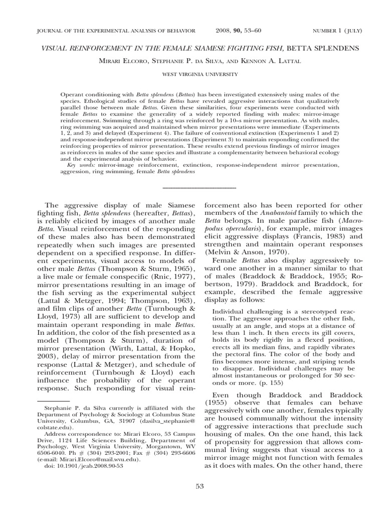 Experimental Analysis of Behavior, 5, 529–530. sponding of Siamese fighting fish (Betta splendens).