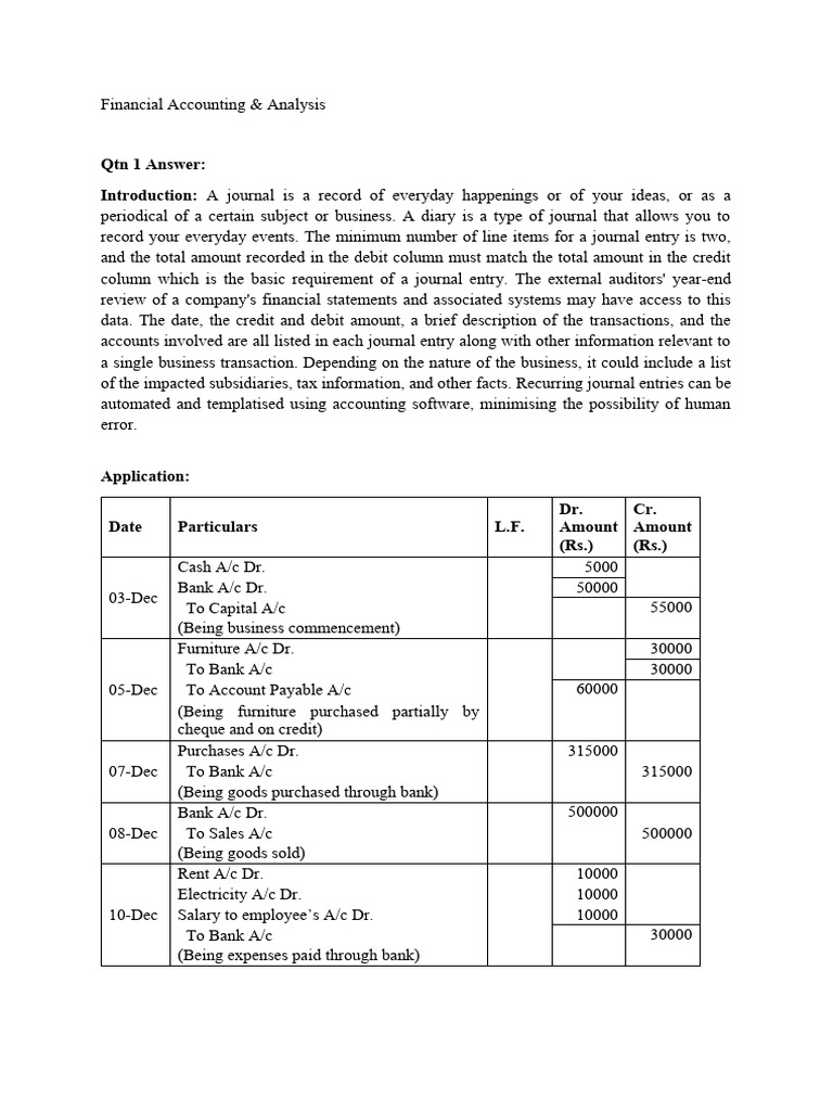 column which is the basic requirement of a journal entry. The external auditors' year-end