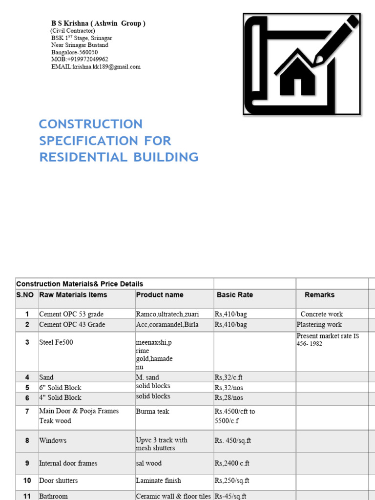 Compound wall , external wall cladding, safety grill, weather proof tiles & sump rcc wall will be extra cost.