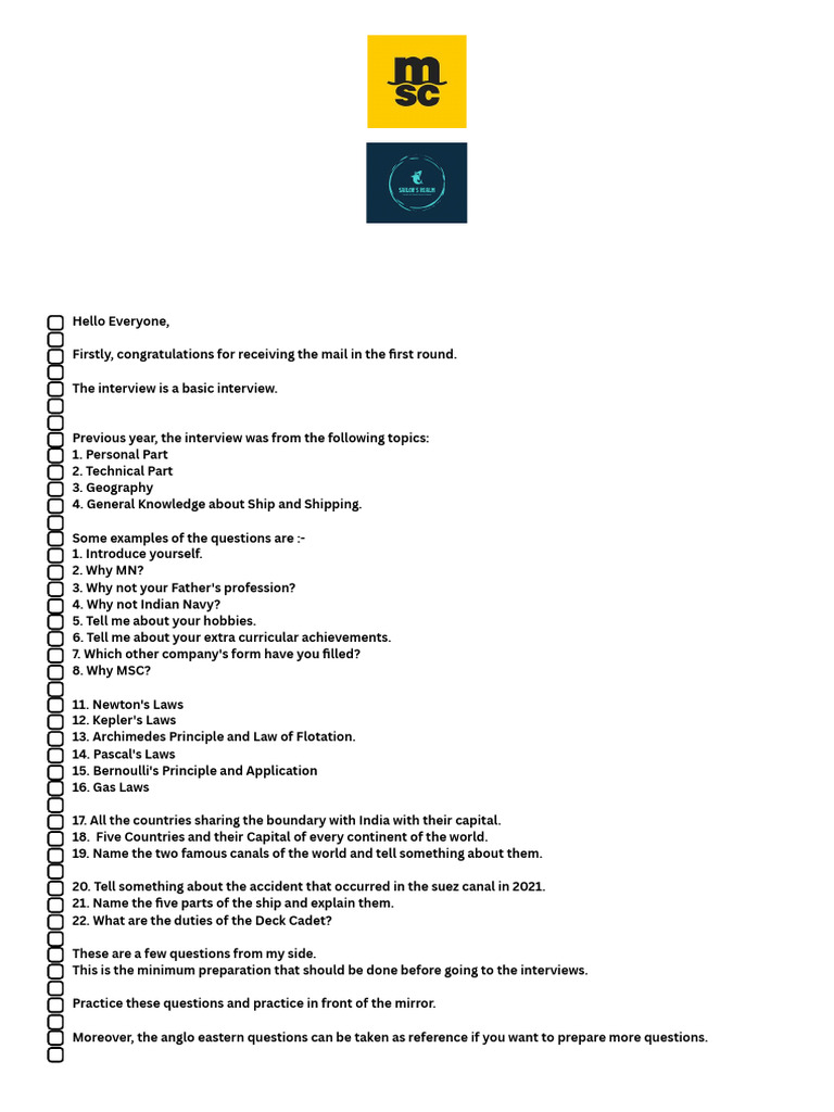 Moreover, the anglo eastern questions can be taken as reference if you want to prepare more questions.