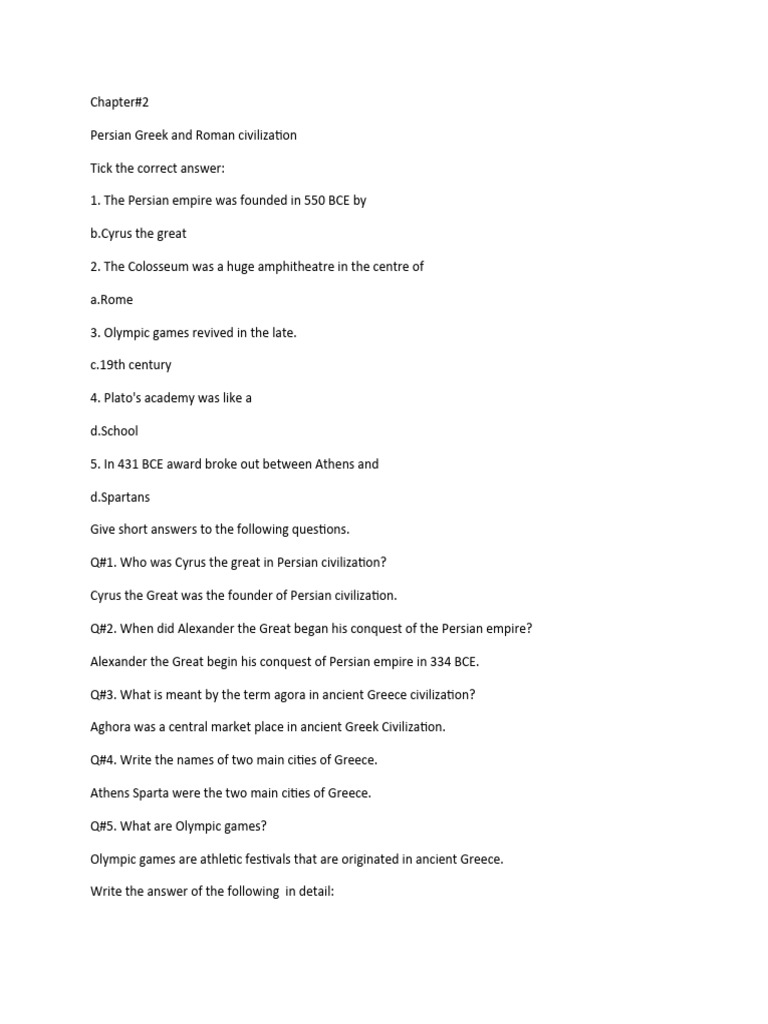 Q#2. Describe the social and political activities of the Persian Greek and Roman people.