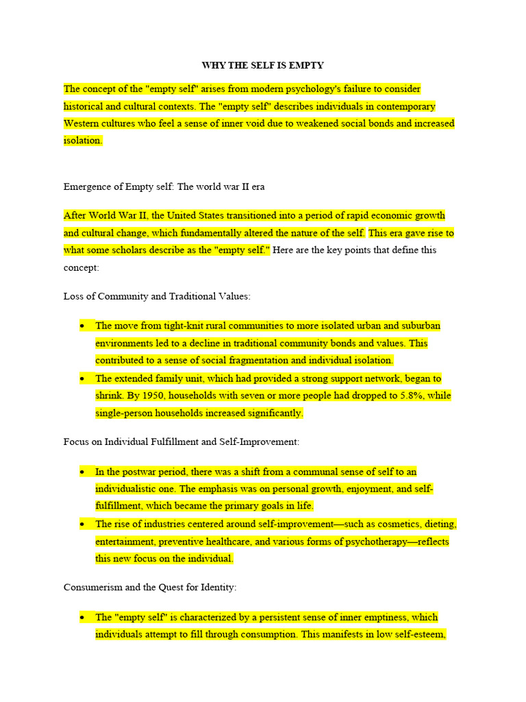 historical and cultural contexts. The "empty self" describes individuals in contemporary