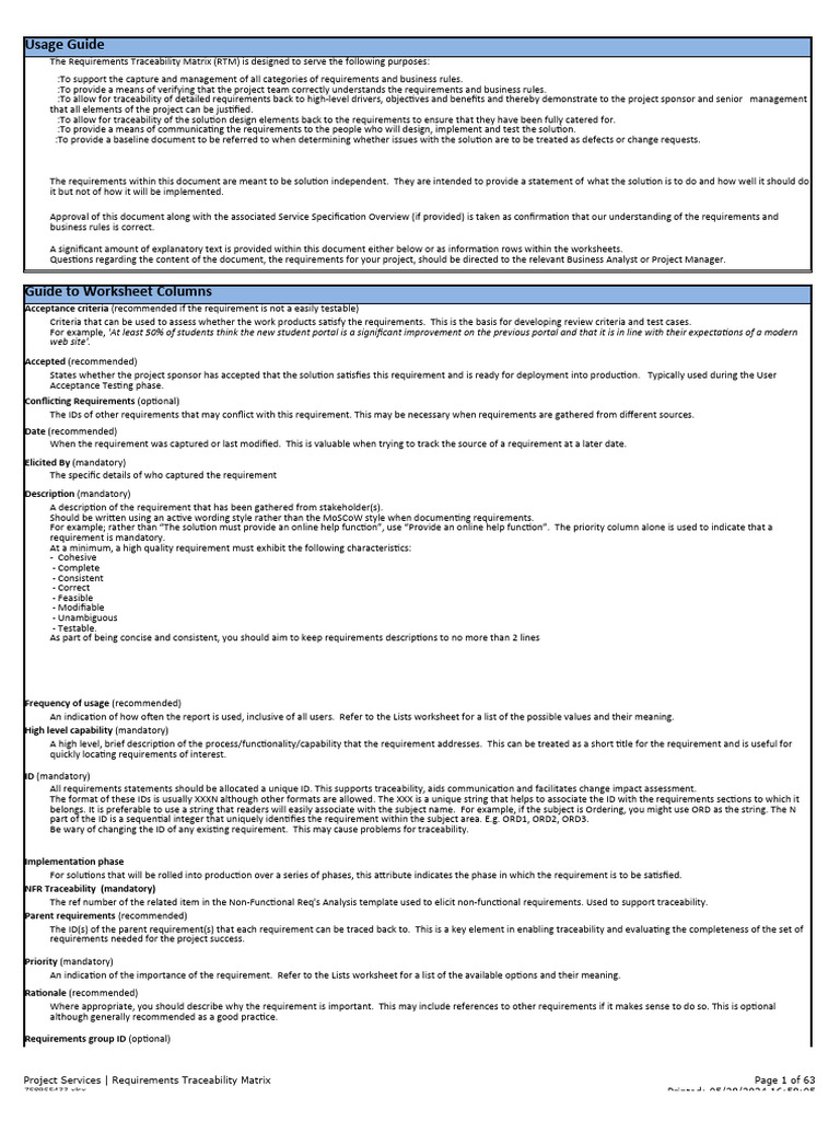 Requirements Traceability Matrix Guide