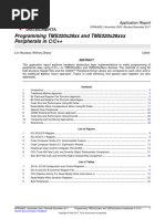 The C280x/C2801x C/C++ peripheral header files and example projects facilitate writing in C/C++ Code for the Texas Instruments TMS320x280x DSPs. The code can be used as a learning tool or as the basis for a development platform depending on the current needs of the user. Learning Tool: This download includes several example Code Composer Studio projects for a 280x/2801x development platform. One such platform is the eZdsp F2808 USB from Spectrum Digital Inc. (www.spectrumdigital.com). These examples demonstrate the steps required to initialize the device and utilize the onchip peripherals. The provided examples can be copied and modified giving the user a platform to quickly experiment with different peripheral configurations. These projects can also be migrated to other devices by simply changing the memory allocation in the linker command file. Development Platform: The peripheral header files can easily be incorporated into a new or existing project to provide a platform for accessing the on-chip peripherals using C or C++ code. In addition, the user can pick and choose functions from the provided code samples as needed and discard the rest. To get started this document provides the following information: Overview of the bit-field structure approach used in the DSP280x C/C++ peripheral header files.