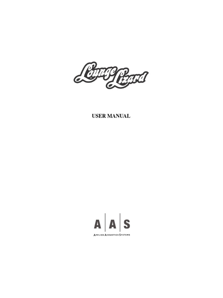 Information in this manual is subject to change without notice and does not represent a commitment on the part of Applied Acoustics Systems DVM Inc. The software described in this manual is furnished under a license agreement. The software may be used only in accordance of the terms of this license agreement. It is against the law to copy this software on any medium except as specically allowed in the license agreement. No part of this manual may be copied, photocopied, reproduced, translated, distributed or converted to any electronic or machine-readable form in whole or in part without prior written approval of Applied Acoustics Systems DVM Inc. Copyright c 2005 Applied Acoustics Systems DVM Inc. All rights reserved. Printed in Canada. Program Copyright c 2002-2005 Applied Acoustics Systems, Inc. All right reserved. Lounge Lizard EP is a Trademark of Applied Acoustics Systems DVM Inc. Windows 98, 2000, NT, ME, XP and DirectX are either trademarks or registered trademarks of Microsoft Corporation. Macintosh, Mac OS, QuickTime and Audio Units are registered trademarks of Apple Corporation. VST Instruments and ASIO are trademarks of Steinberg Soft Und Hardware GmbH. RTAS is a registered trademarks of Digidesign. Adobe and Acrobat are trademarks of Adobe Systems incorporated. All other product and company names are either trademarks or registered trademarks of their respective owner. Unauthorized copying, renting or lending of the software is strictly prohibited. Visit Applied Acoustics Systems DVM Inc. on the World Wide Web at www.applied-acoustics.com