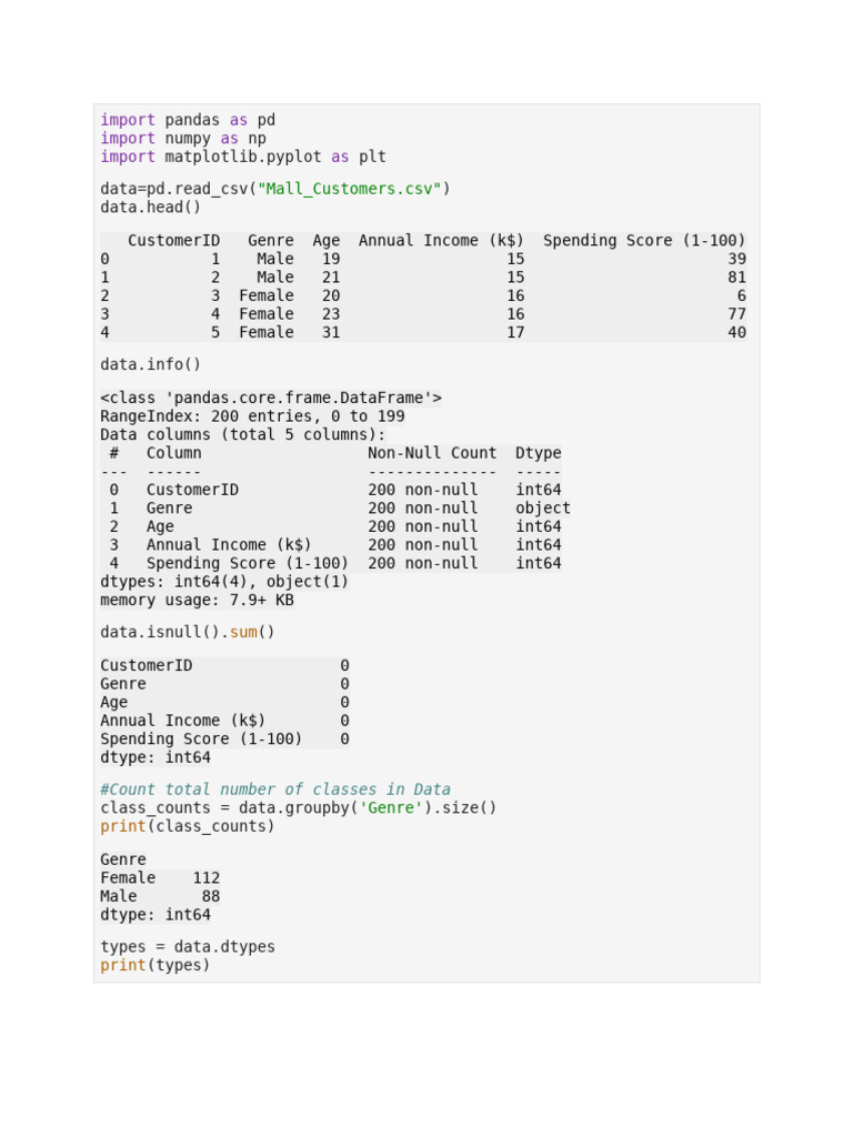 CustomerID Genre Age Annual Income (k$) Spending Score (1-100)