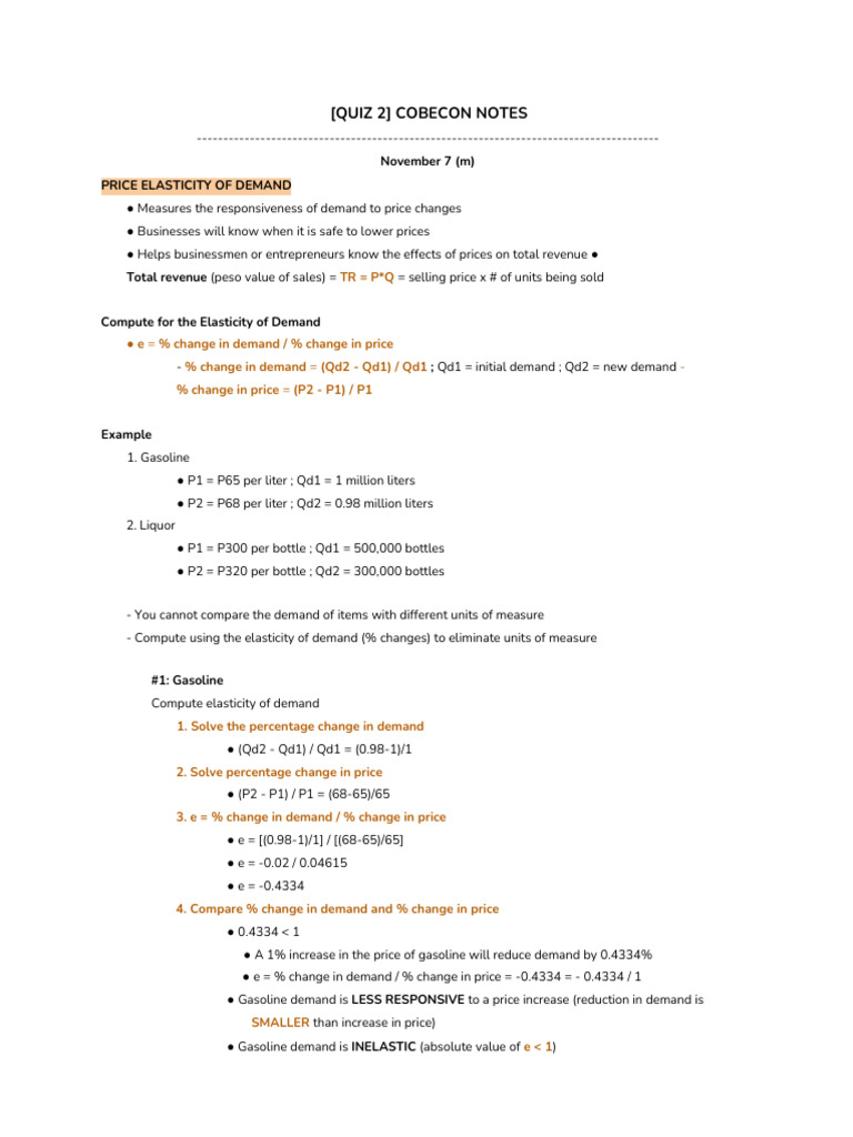 ● Total revenue at the new price: TR = P*Q = 68*0.98M liters = P66.64 M