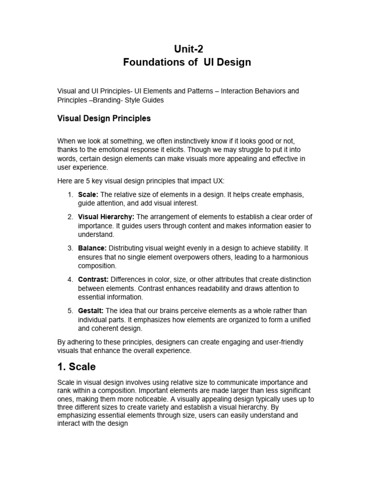 Visual and UI Principles- UI Elements and Patterns – Interaction Behaviors and