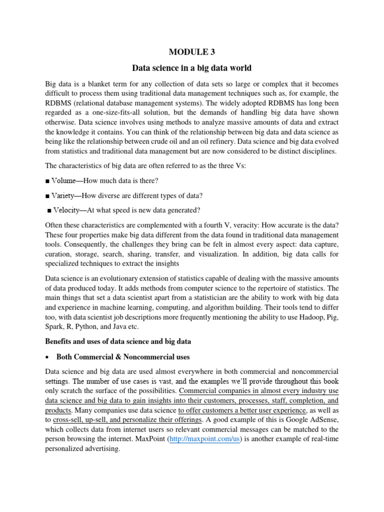 the knowledge it contains. You can think of the relationship between big data and data science as