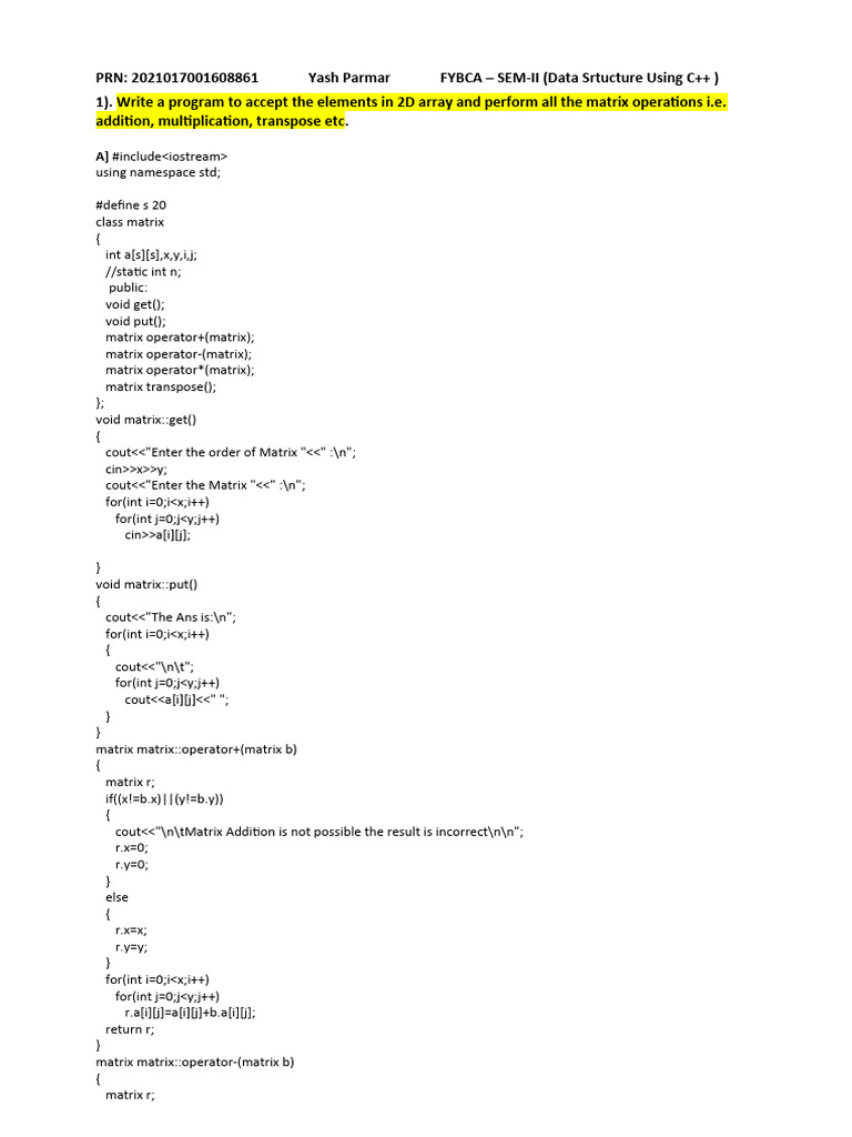 PRN: 2021017001608861 Yash Parmar FYBCA – SEM-II (Data Srtucture Using C++ )
