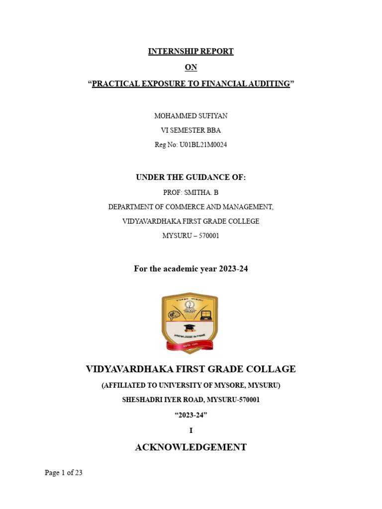 “PRACTICAL EXPOSURE TO FINANCIAL AUDITING”