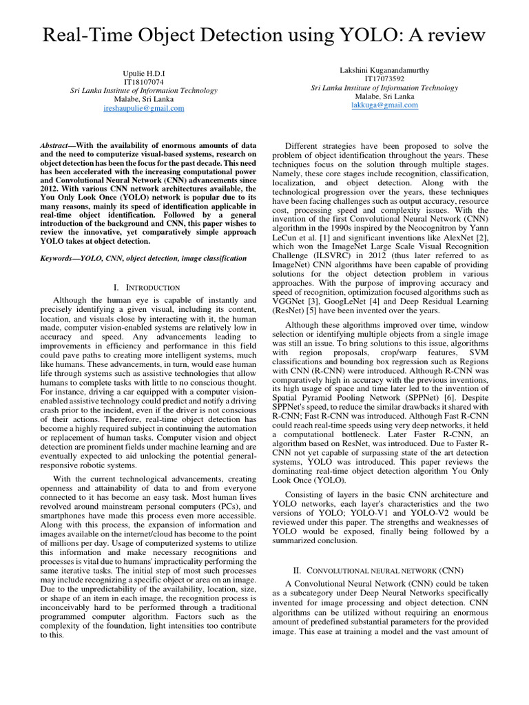 Keywords—YOLO, CNN, object detection, image classification Challenge (ILSVRC) in 2012 (thus later referred to as