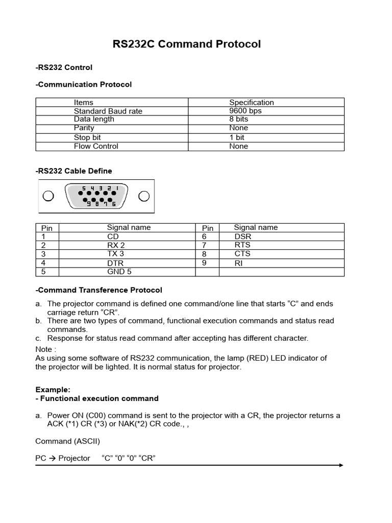a. Power ON (C00) command is sent to the projector with a CR, the projector returns a