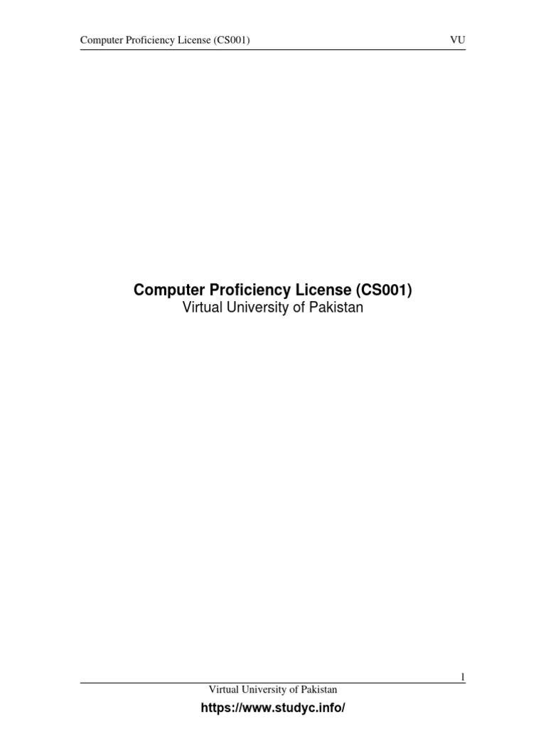 (cs001). It is meant to be used along with the DVDs/CDs provided by Virtual University of