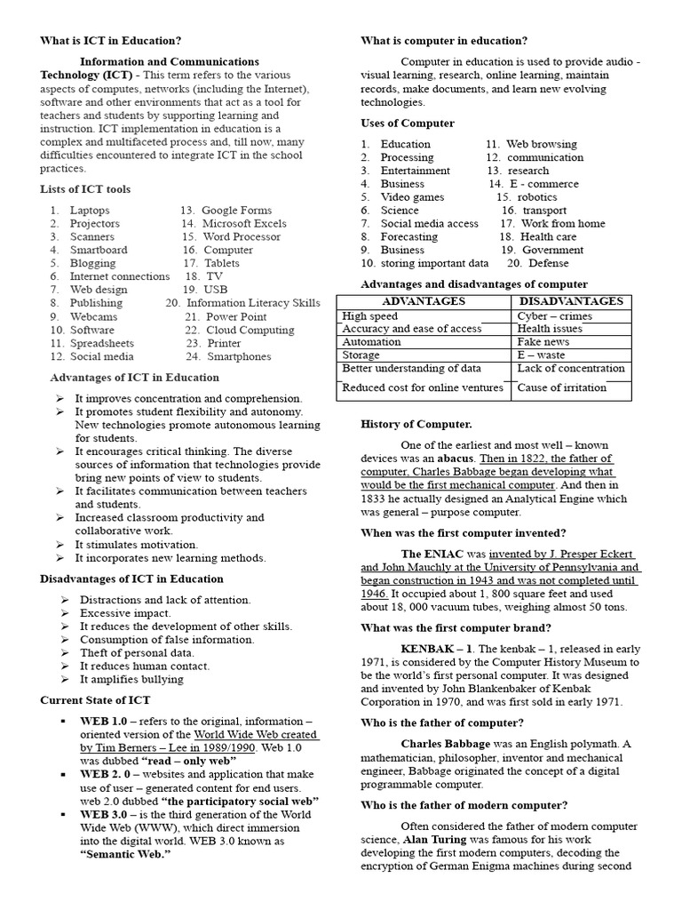 Technology (ICT) - This term refers to the various visual learning, research, online learning, maintain
