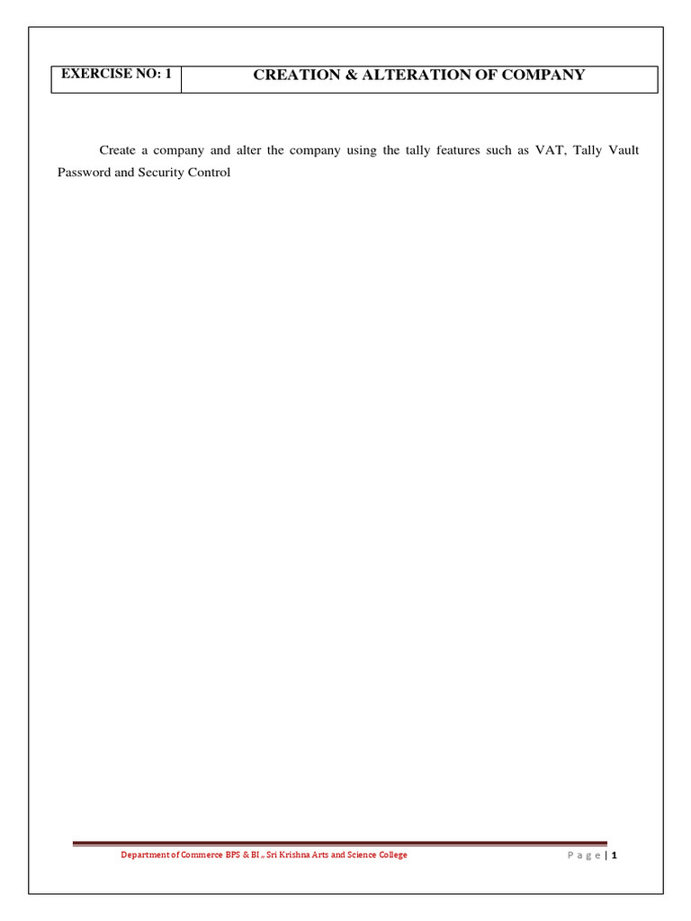 EXERCISE NO: 1 CREATION & ALTERATION OF COMPANY