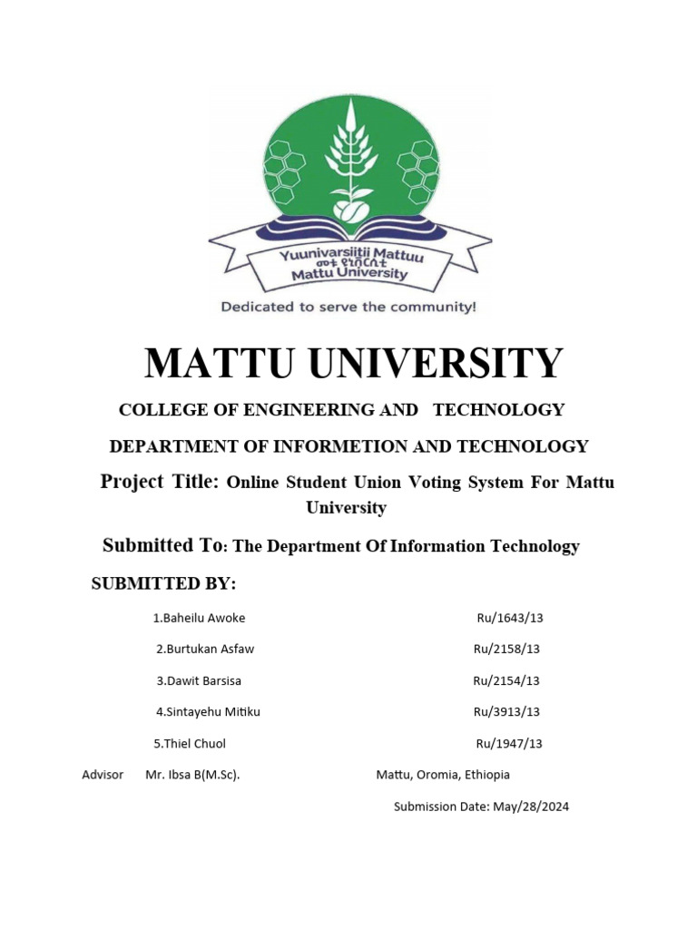 interactive, electronic, voting system for the Mattu University student union members’ election