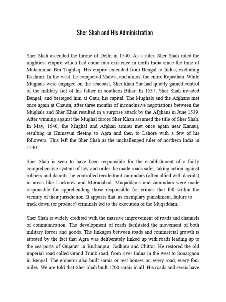 Sher Shah ascended the throne of Delhi in 1540. As a ruler, Sher Shah ruled the