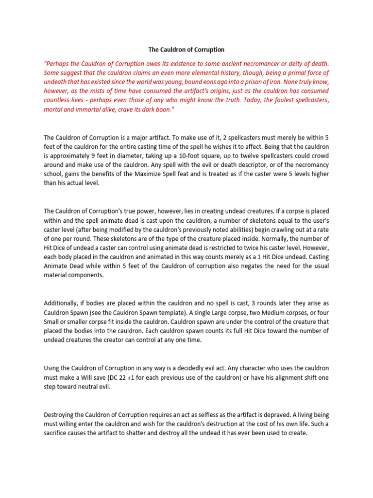 "Perhaps the Cauldron of Corruption owes its existence to some ancient necromancer or deity of death.