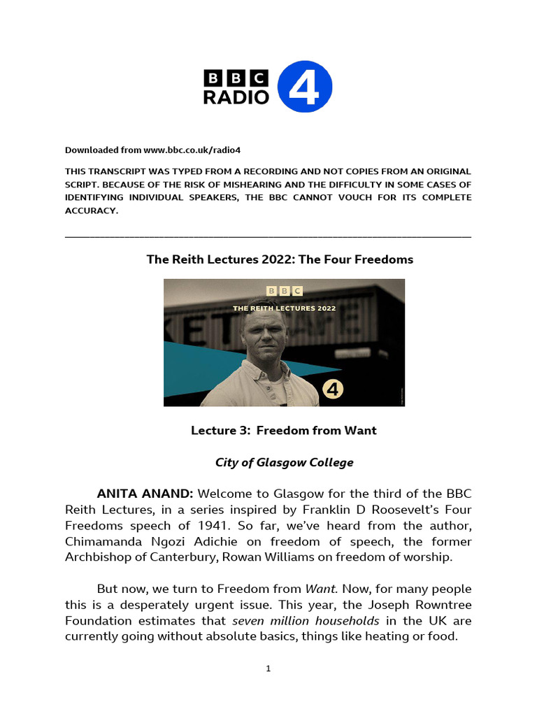 The Reith Lectures 2022: The Four Freedoms
