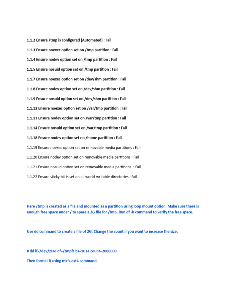 1.1.3 Ensure noexec option set on /tmp partition : Fail
