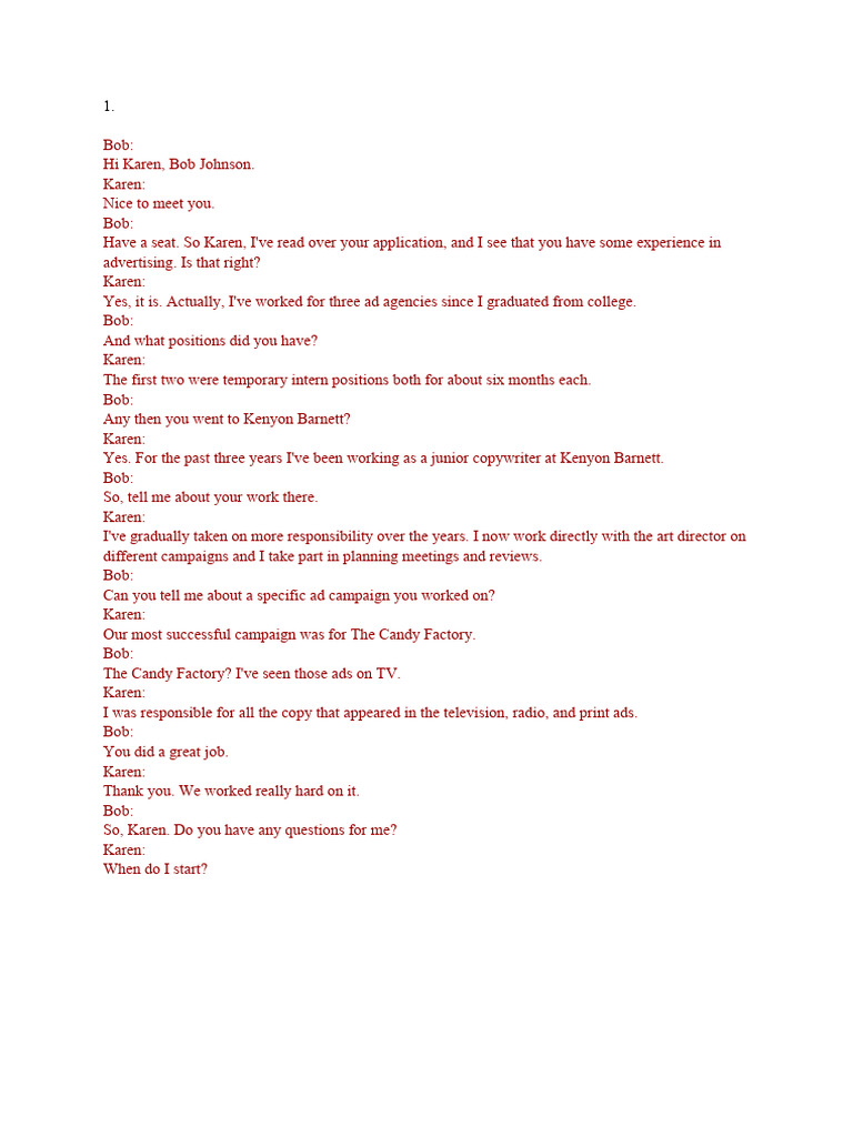 Bob: I can see from your résumé that you worked as a copywriter at Ad Prestige for five years.
