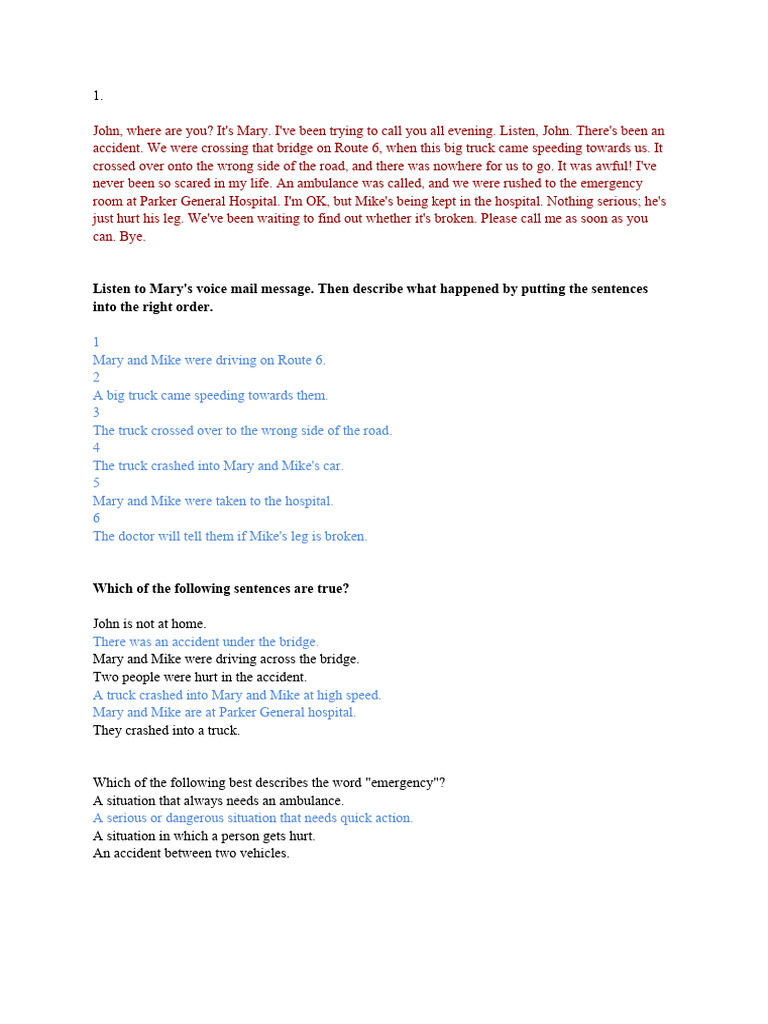 Listen to Mary's voice mail message. Then describe what happened by putting the sentences
