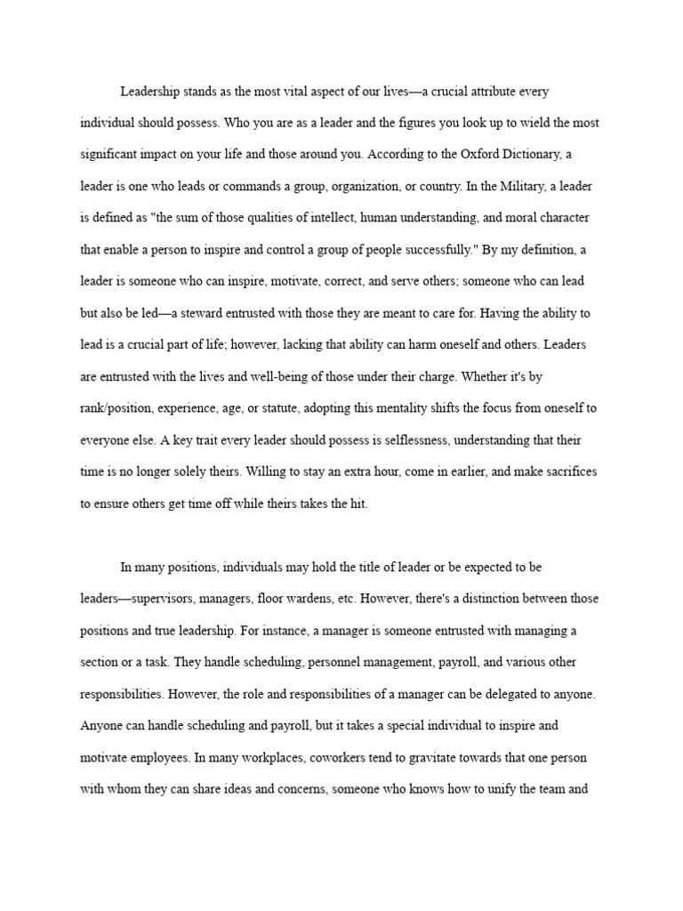 individual should possess. Who you are as a leader and the figures you look up to wield the most
