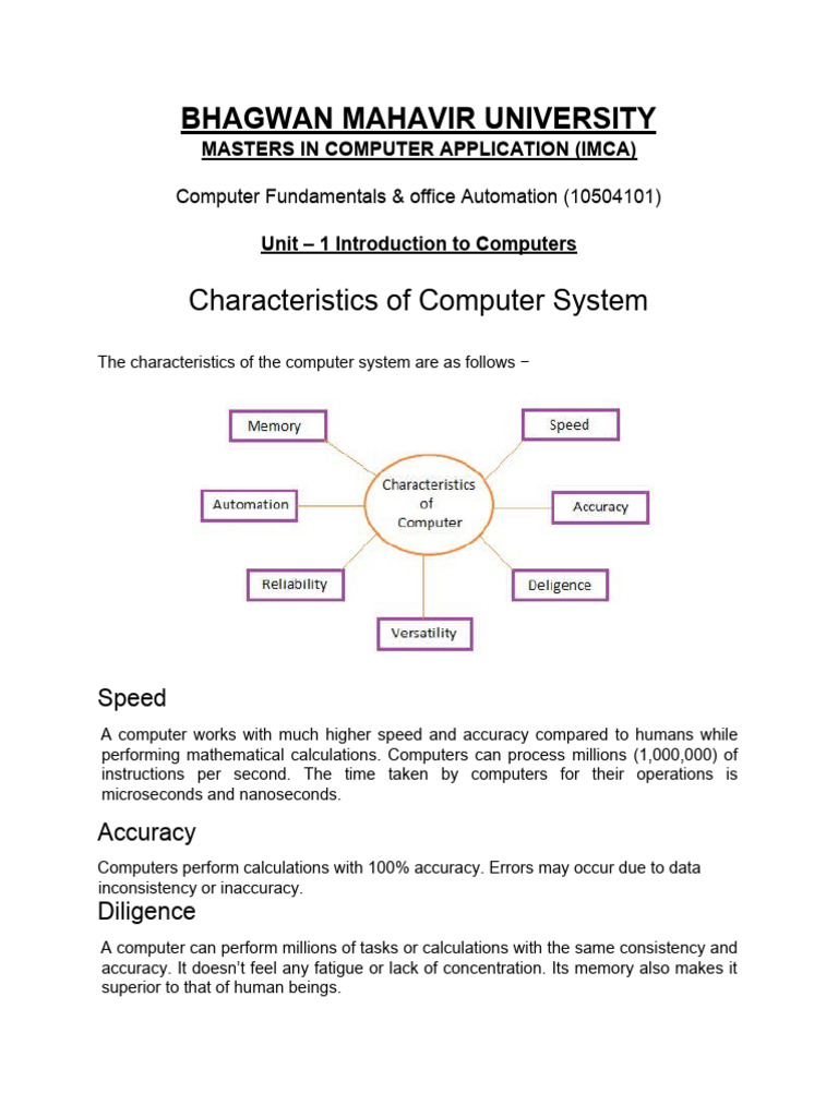 Characteristics of Computer System