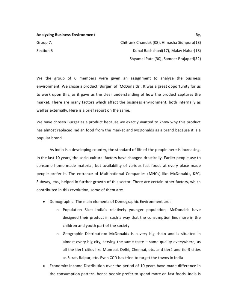 envlronmenL We chose a producL '8urger' of 'Mcuonalds' lL was a greaL opporLunlLy for us