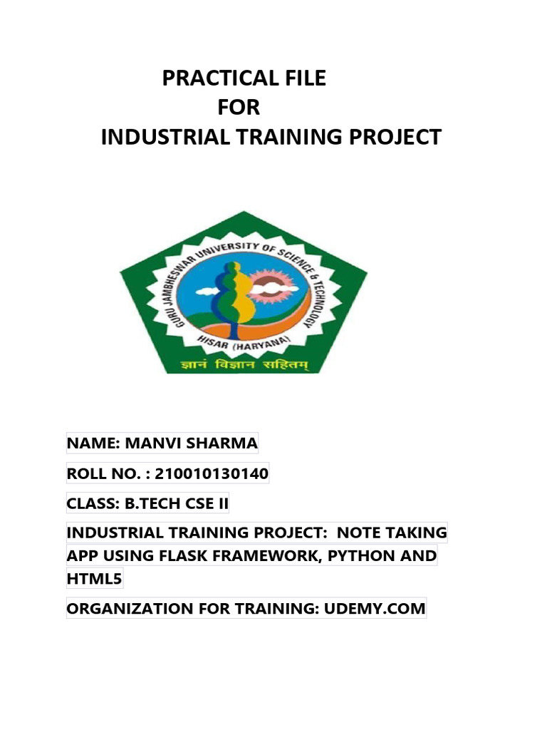 INDUSTRIAL TRAINING PROJECT: NOTE TAKING