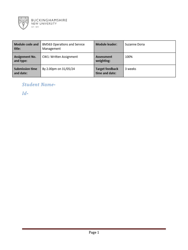 Module code and BM563 Operations and Service Module leader: Suzanne Doria