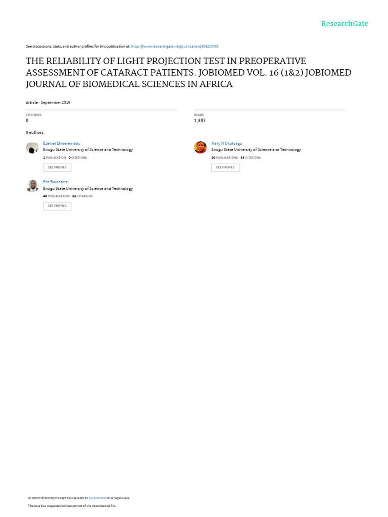 Ekweremadu E. N et al JobiomedAfric Vol.16 NO 1&2