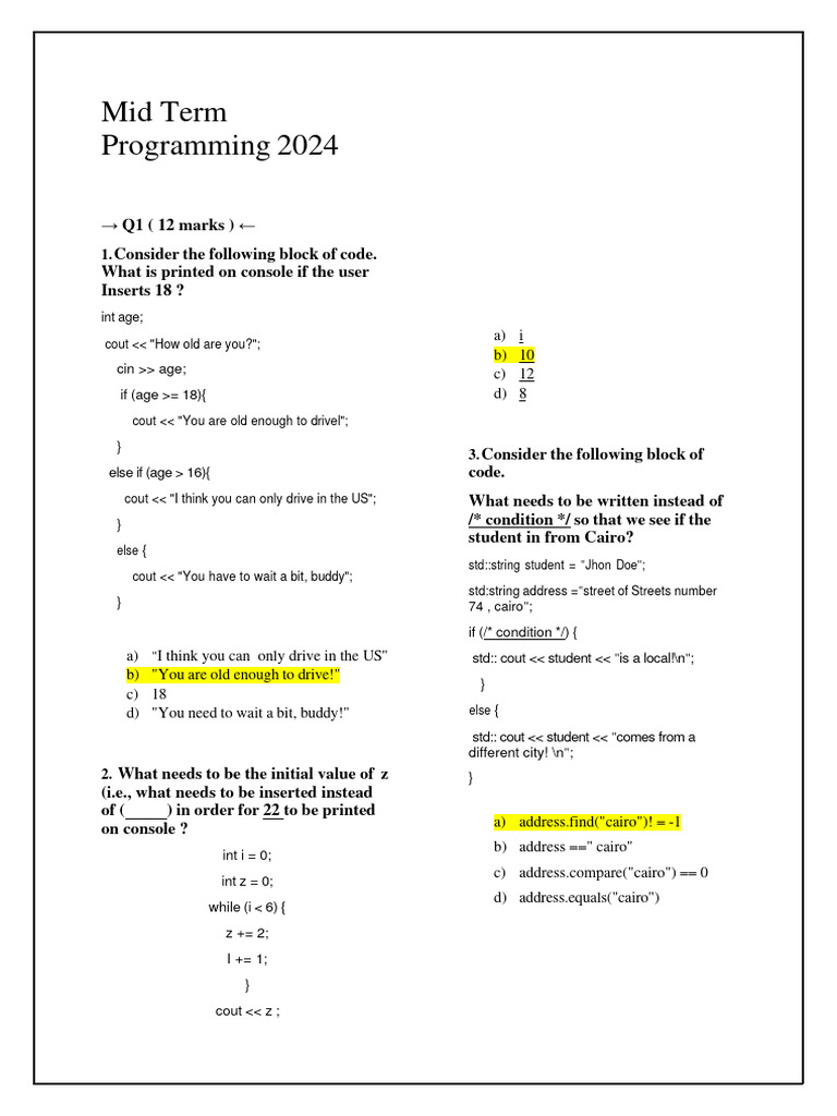 a) "I think you can only drive in the US" std:: cout << student << "is a local!\n";