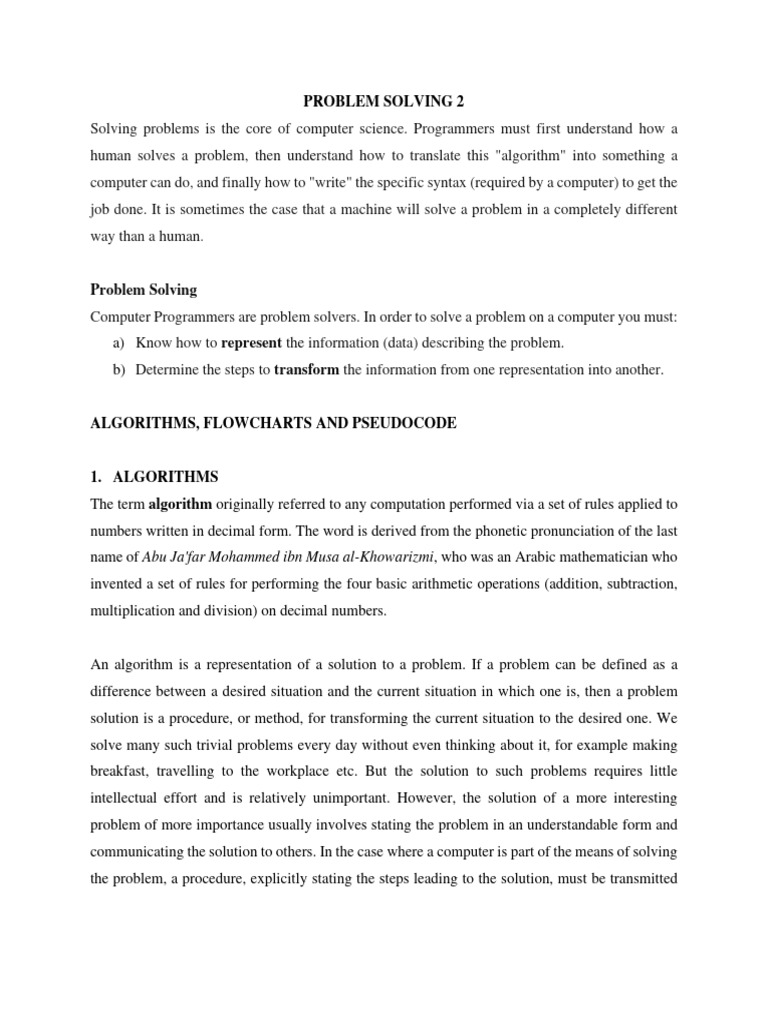 the problem, a procedure, explicitly stating the steps leading to the solution, must be transmitted