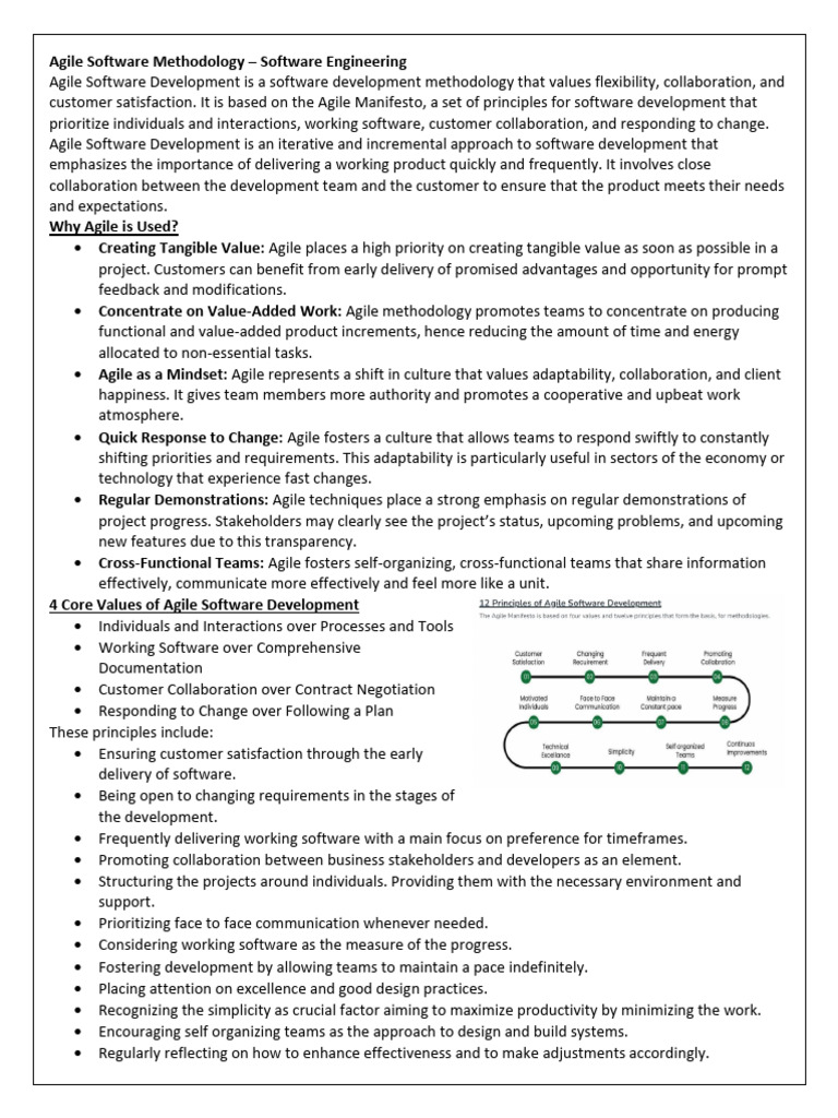 Agile Software Development is a software development methodology that values flexibility, collaboration, and